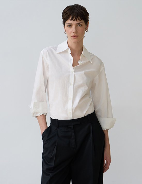 100% 워시드 코튼 포플린 소재의 버튼업 셔츠