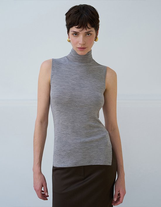 [르쏭드비] 파인 울 슬리브리스 니트 (그레이) 2종 (택1)
