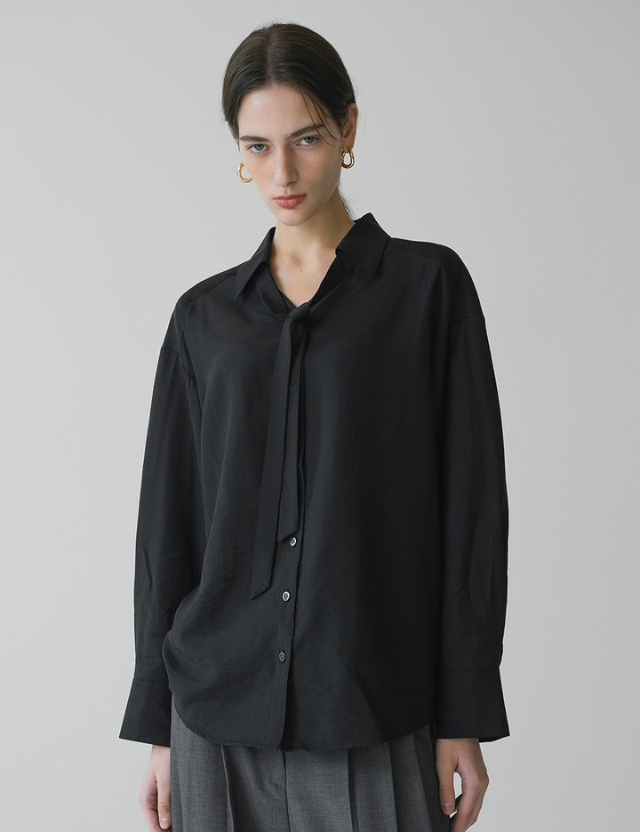 [시야쥬] 브이넥 타이 블라우스_블랙 (SITP5222)