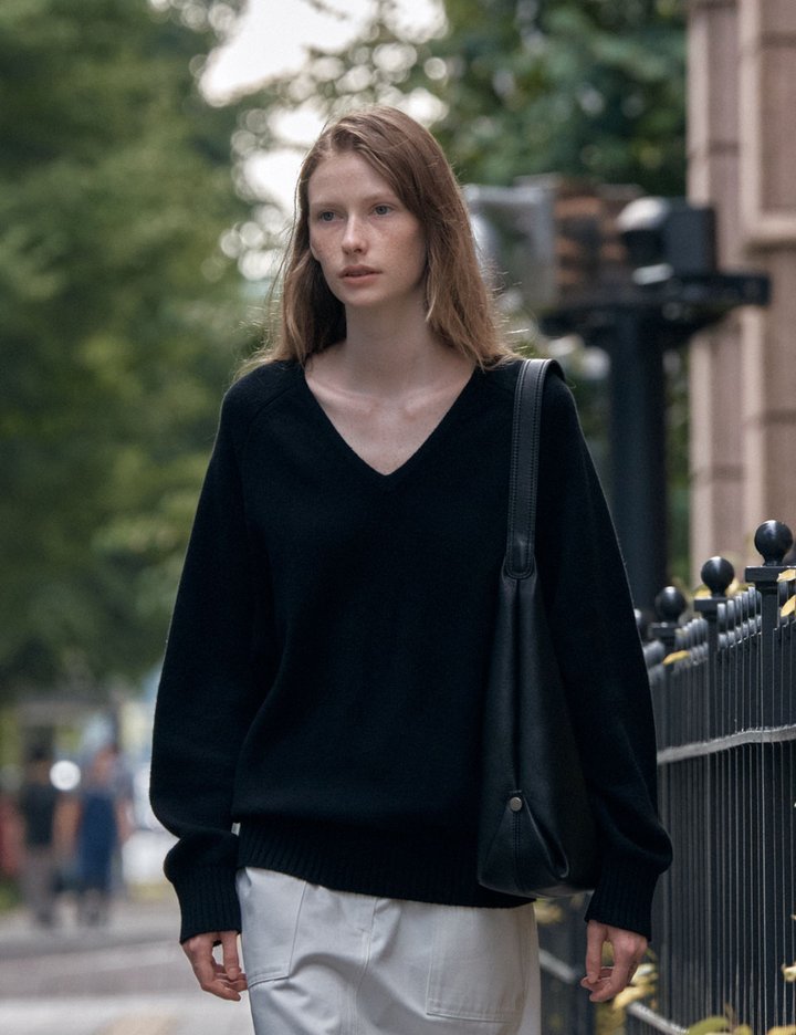 [시야쥬] 울 블렌드 루즈 브이넥 니트_블랙 (SIKN2156)