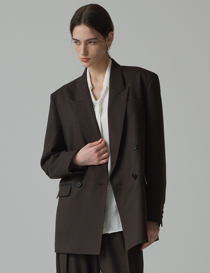 [시야쥬] 울 블렌드 오버 핏 더블 블레이저_다크 브라운 (SIOT4148)