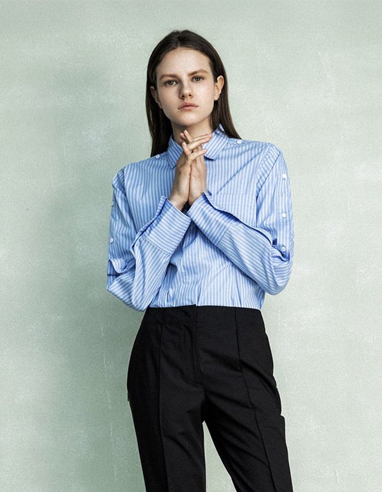 숄더라인을 따라 버튼 디테일 포인트인 셔츠