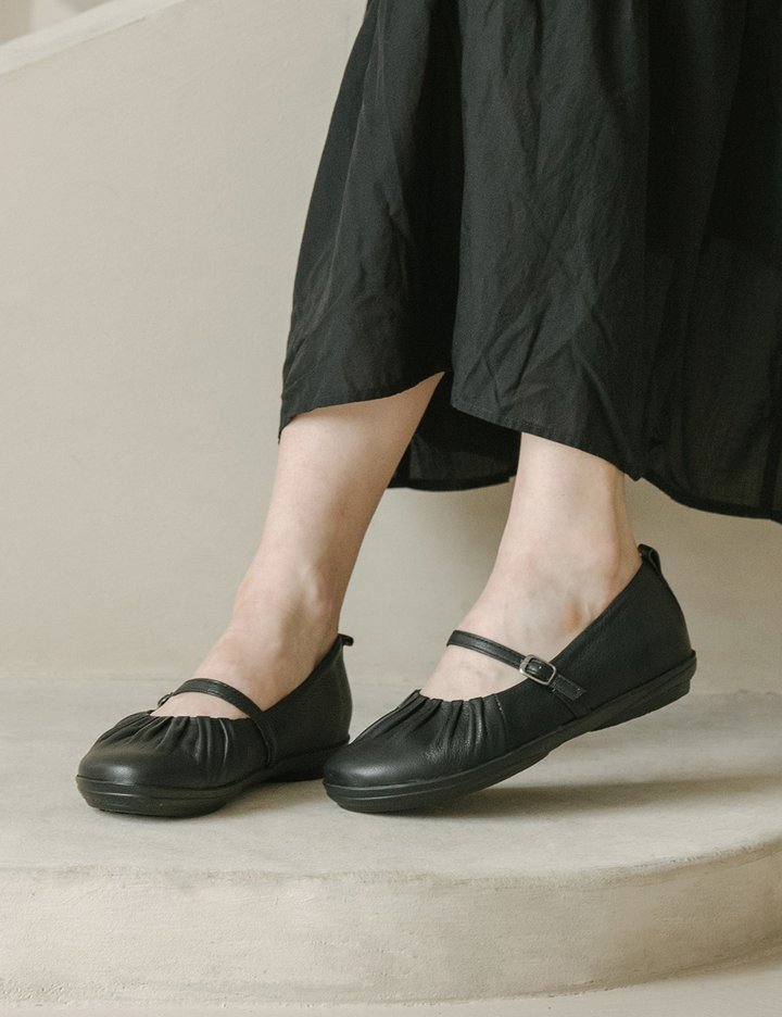 발을 따라 스르는 셔링 라인이 앙증맞은 메리제인 슈즈