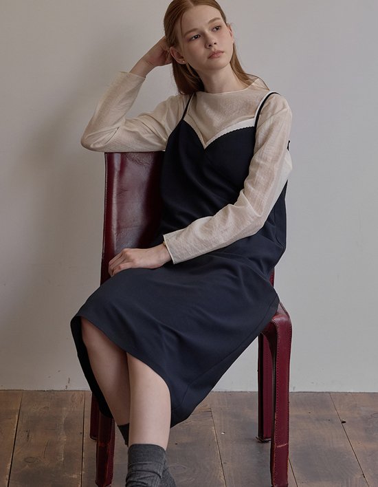 [비뮤즈맨션] 콤비네이션 레이어드 드레스 네이비