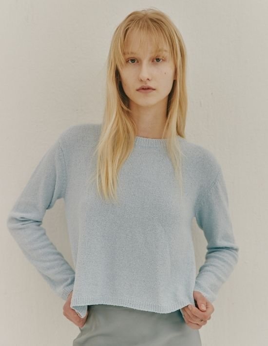 [오쿠카] 백 지퍼 니트 탑 - 스카이블루 (FREE)