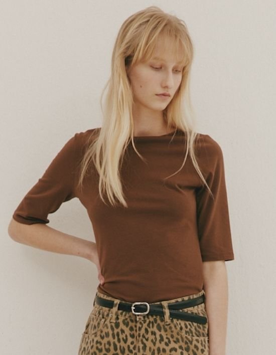 [오쿠카] 코튼 & 모달 심플 탑 - 브라운 (FREE)