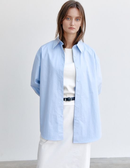 [오쿠카] 코튼 트윌 오버핏 셔츠 - 블루 (FREE)