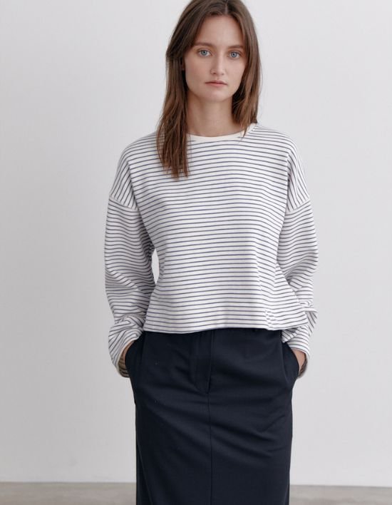 [오쿠카] 스트라이프 크롭 탑 - 블루 (FREE)