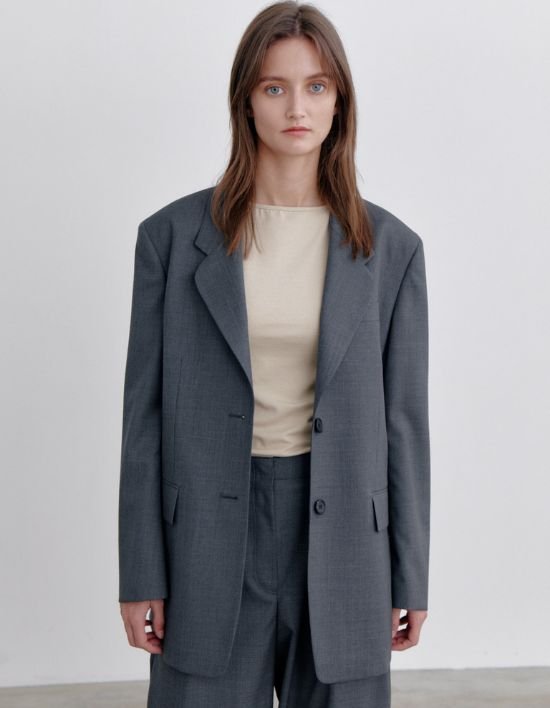 [오쿠카] 클래식 오버핏 울 자켓 - 그레이 (FREE)