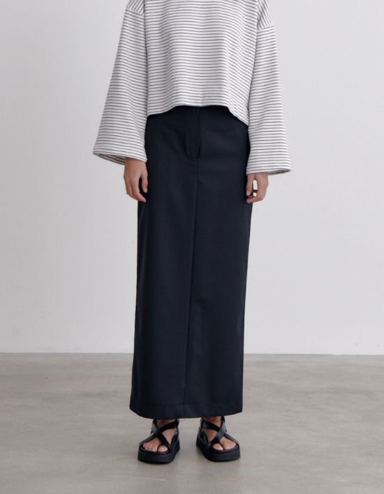 [오쿠카] 스트레이트 울 스커트 - 네이비