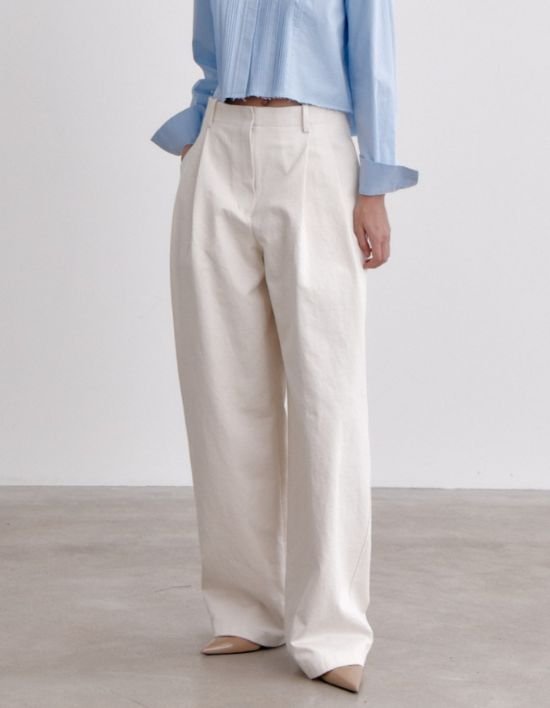 [오쿠카] 투턱 코튼 트라우져 - 크림