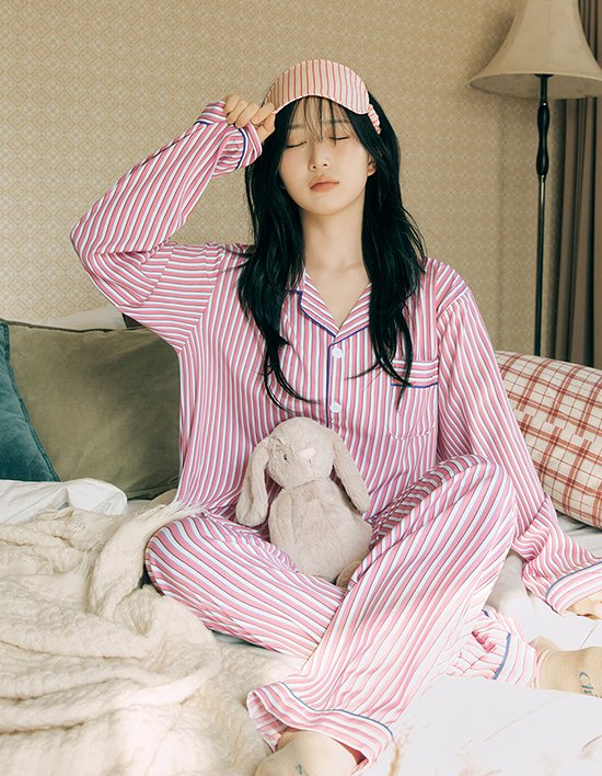 [도씨] (해원' Pick)실크핏 피오니 긴팔 커플 잠옷 세트