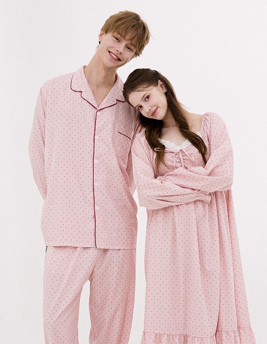 [도씨] 실크핏 리틀도트 긴팔 잠옷 원피스