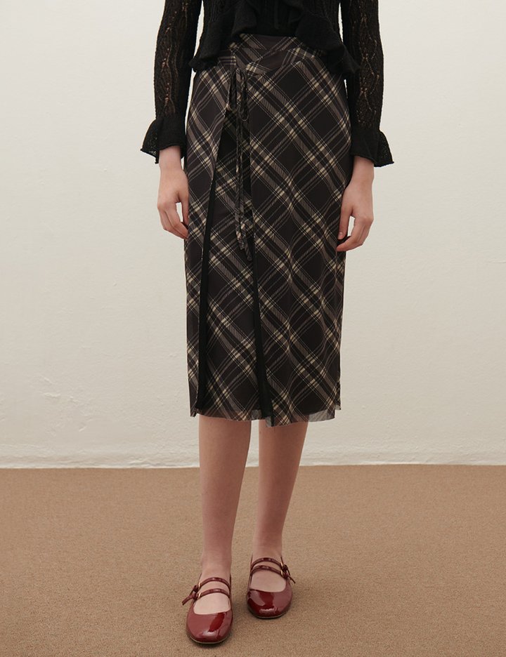 [샤틴] 체크패턴 랩 스커트 S253B356