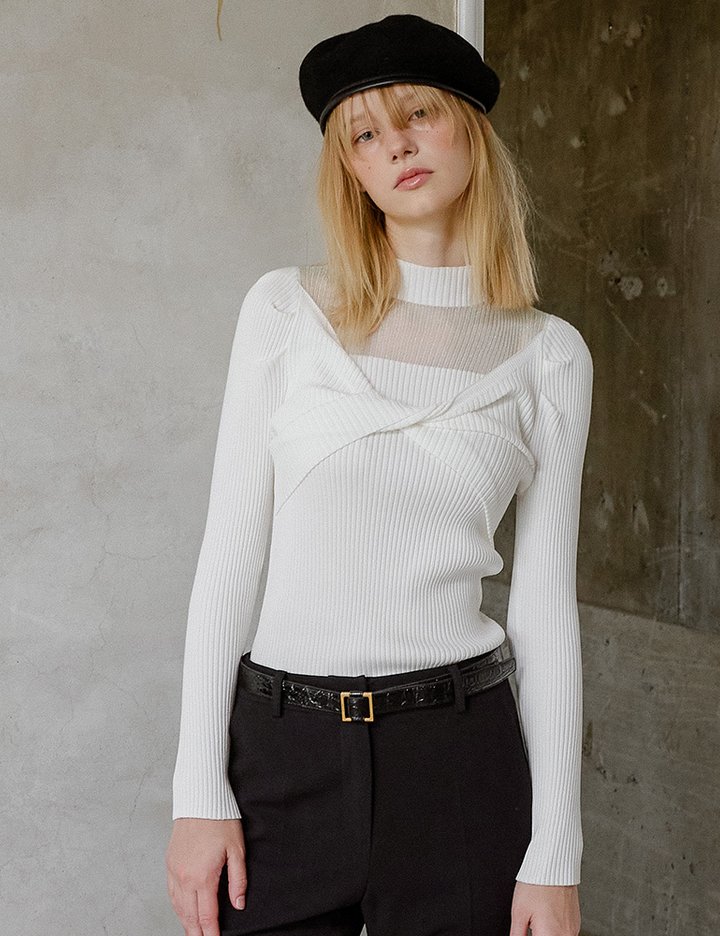 [샤틴] 시스루 배색 트위스트 니트 S253T951