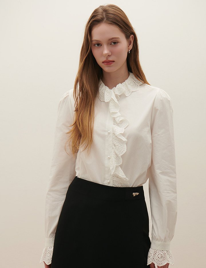 [샤틴] 펀칭 러플 레이스 블라우스 O253T264
