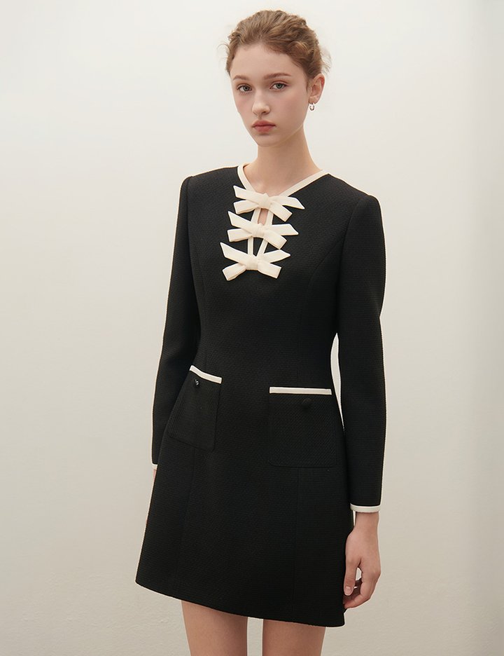 [샤틴] 배색 리본장식 미니원피스 S253S601_2컬러 (택1)