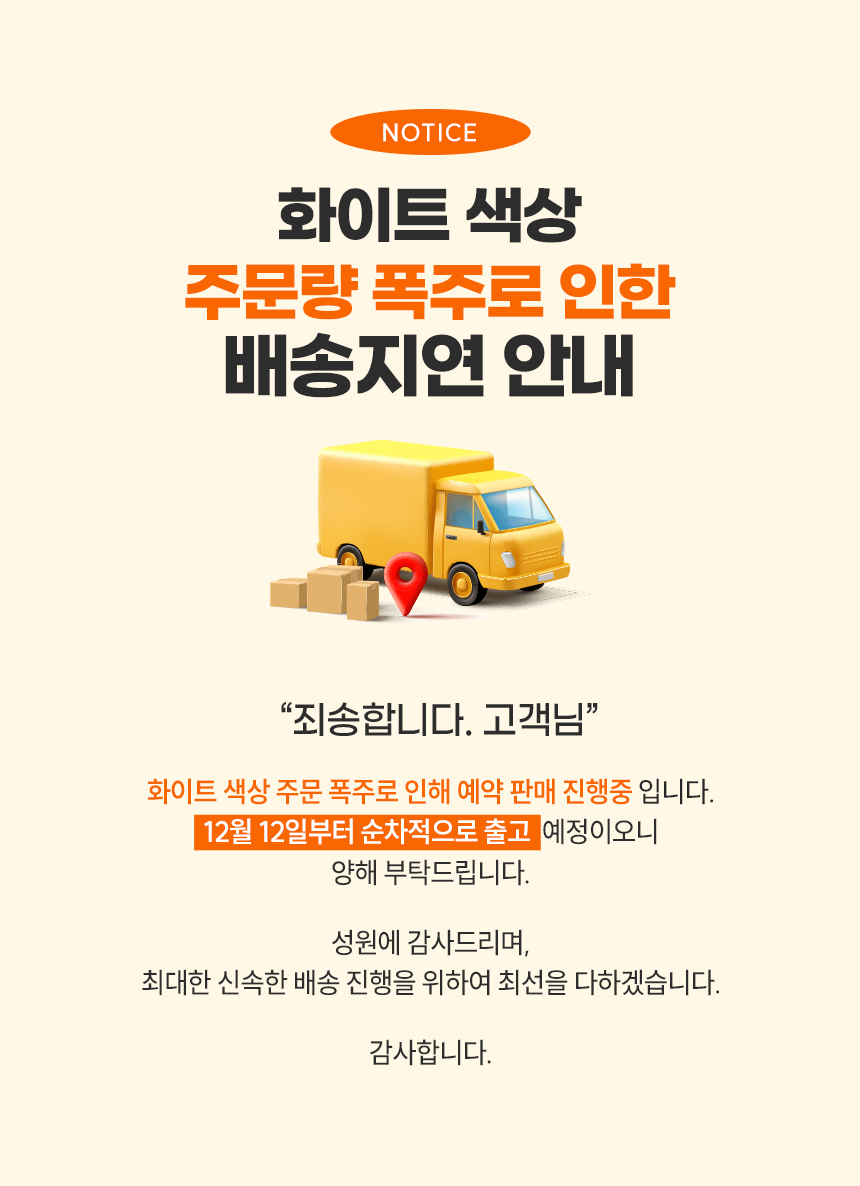 배송 과정 중 기상 악화 및 도로교통 상황에 따라 부득이하게 지연 배송이 발생될 수 있습니다.