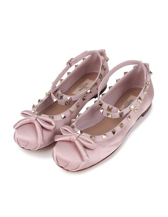 [발렌티노 가라바니] 라프리마 발렌티노 여성 락스터드 새틴 발레리나 슈즈 4W2S0HB6