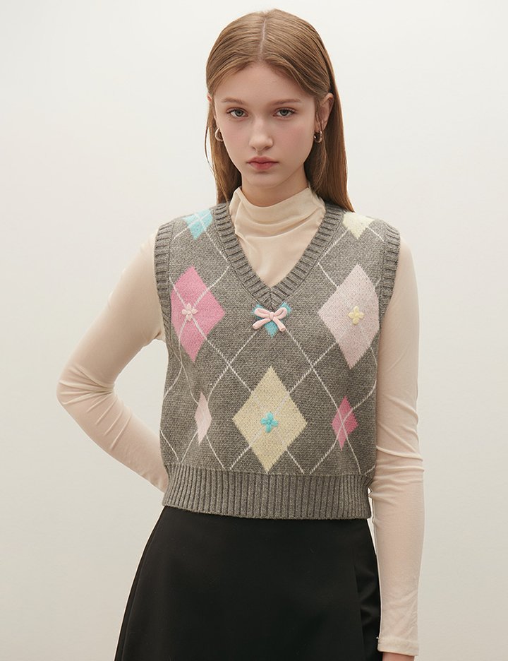 [샤틴] 리본 아가일 니트 베스트 O254T960