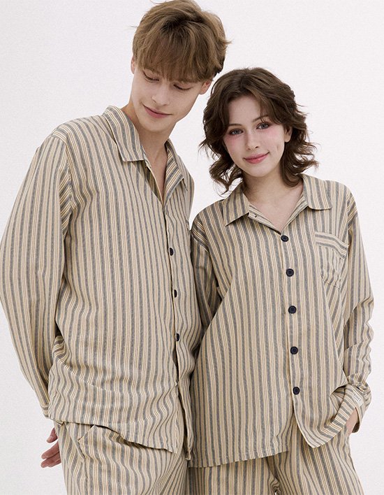 [도씨] 코튼라이크 헤이즐 긴팔 커플 잠옷 세트