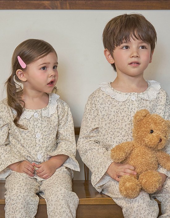 [도씨 키즈] 코튼라이크 아델 레이스 긴팔 키즈 잠옷 세트