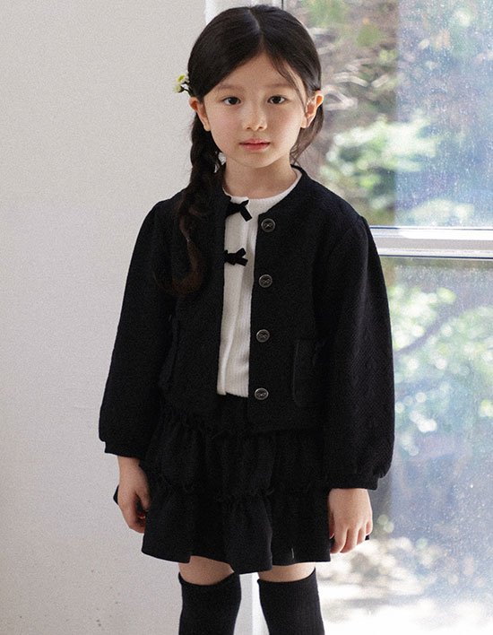 [오즈키즈] 엠보하트 여아 가디건 블랙