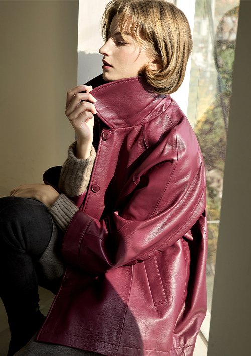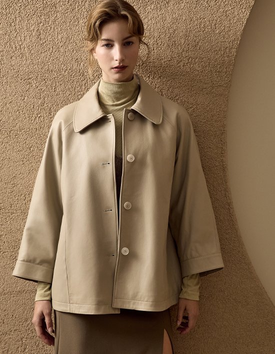 [로보] 이태리 램스킨 레더 하프 코트