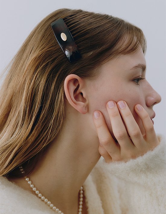 두 컬러씩 세트 구성된 사이드 핀으로, 올림 머리 옆 등 다양한 위치에 꽂아 연출할 수 있는 헤어핀입니다.