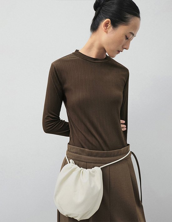 베이직한 라운드넥에 세로 플리츠 주름이 더해진 긴팔 티셔츠