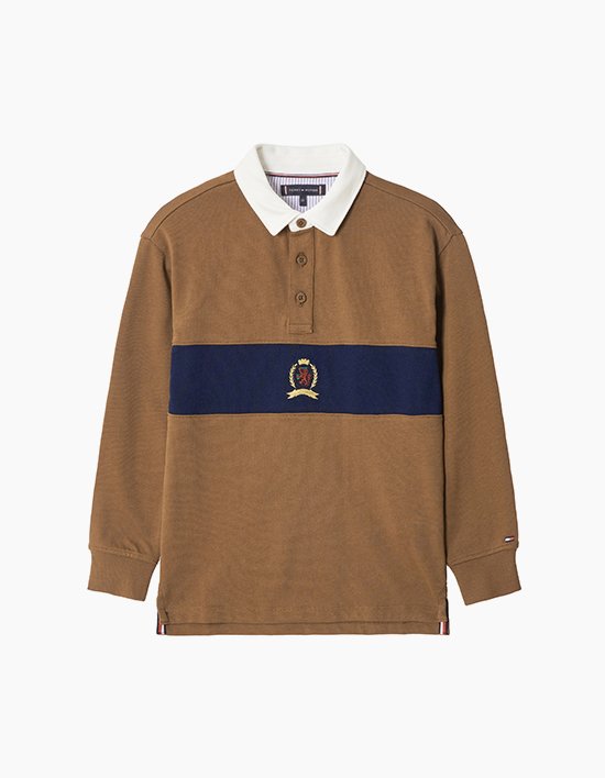 부드러운 면 100% 소재로 제작된 크레스트 그래픽 폴로셔츠입니다.앞면 중앙 패널 디테일과 크레스트 자수가 고급스러운 포인트를 더하며,