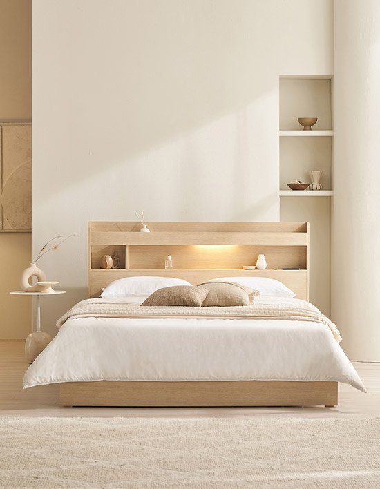 화이트,라이트내추럴 /LED조명+콘센트+수납까지 / ALL IN ONE 침대