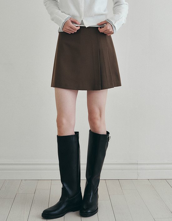 [로에일] 사이드 플리츠 스커트 팬츠 - 브라운