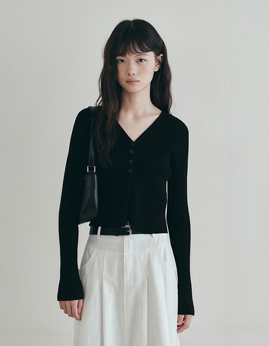 [로에일] 슬림 버튼 골지 니트 가디건 - 블랙