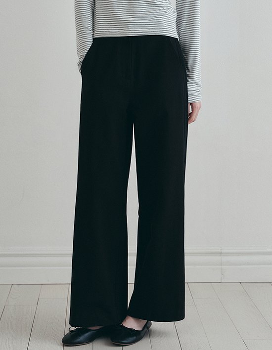 [로에일] 사이드 라인 코튼 와이드 팬츠 - 블랙