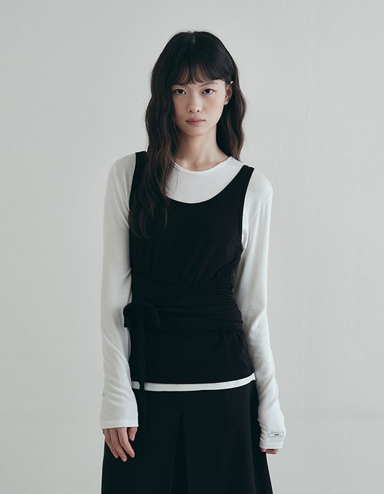 [로에일] 스트랩 레이어드 슬리브리스 탑 - 블랙