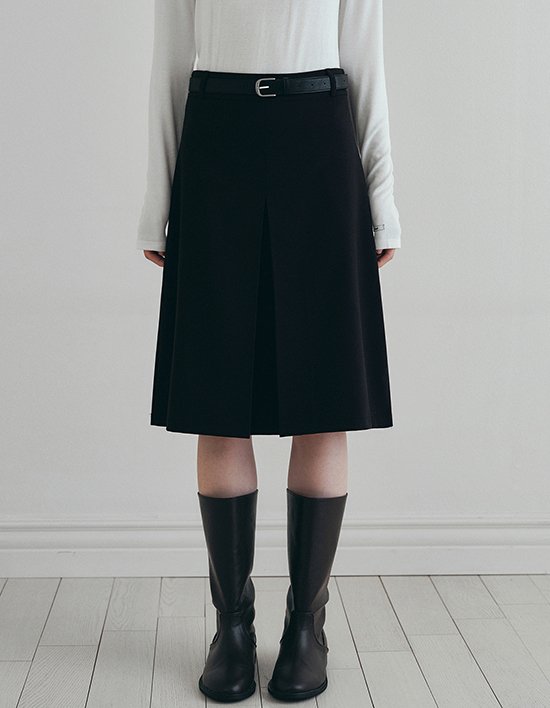 [로에일] 모던 슬릿 A라인 미디 스커트 - 블랙