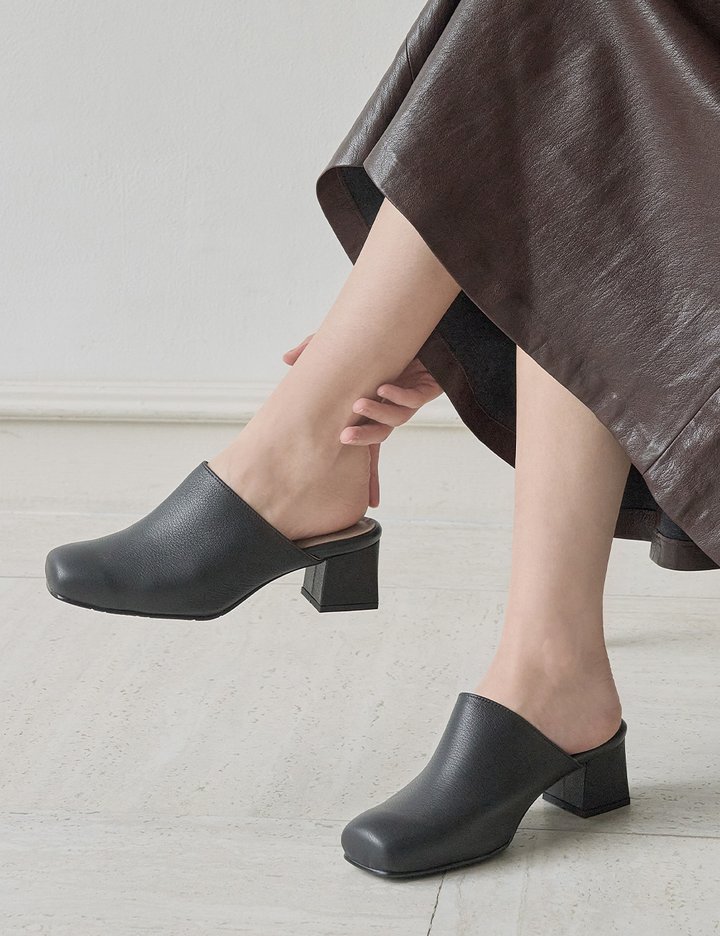 [지쎄] 천연가죽 모데나 스퀘어 뮬 슬리퍼 GIS-46291 2종 (택1)
