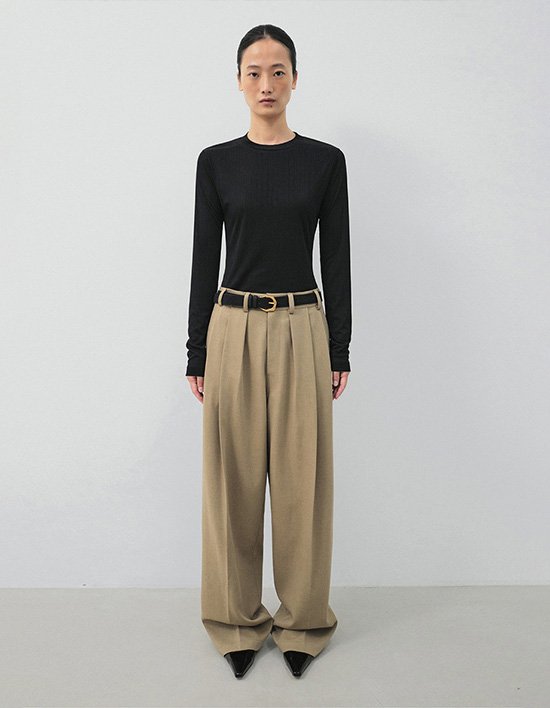 와이드 스트레이트 핏으로 모던함이 느껴지며 벨트 디테일을 더해 고급미를 더한 트라우저 팬츠