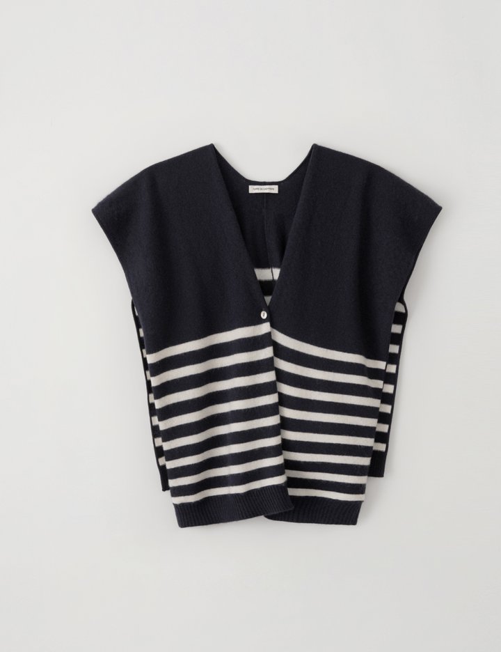 [떼르드 캐시미어] 캐시미어100 스트라이프 버튼 머플러 가디건 네이비