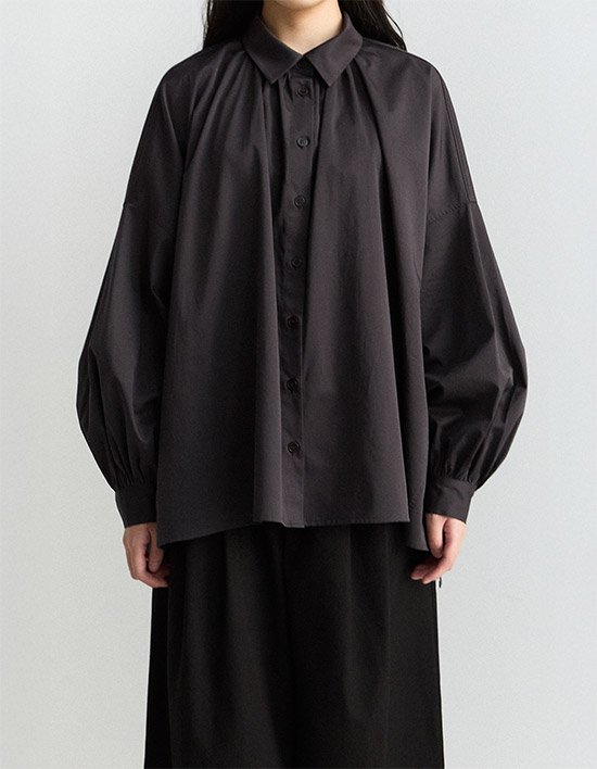 [고드나트] 코튼 플레어 셔링 셔츠(차콜)