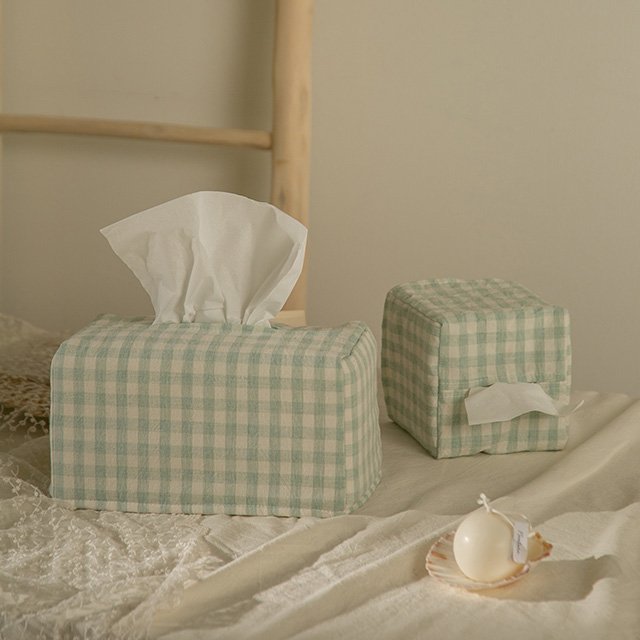 [데코뷰] 체크 워싱 티슈케이스 민트