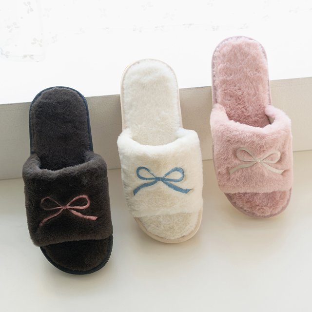 [데코뷰] 포근한 리본 자수 퍼 거실화 3종 (택1)
