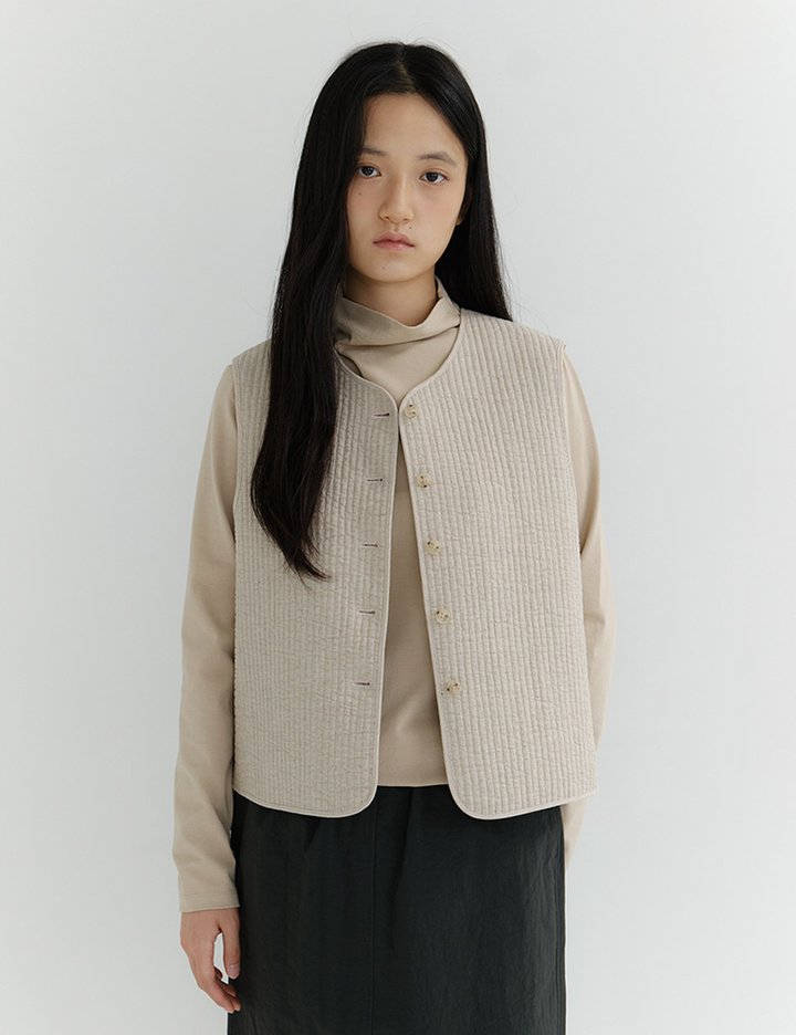 [AYU] 린넨 코튼 퀼티드 베스트_ 베이지