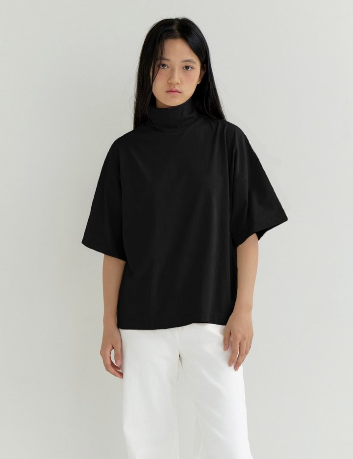 [AYU] 터들넥 하프 슬리브 톱 -블랙
