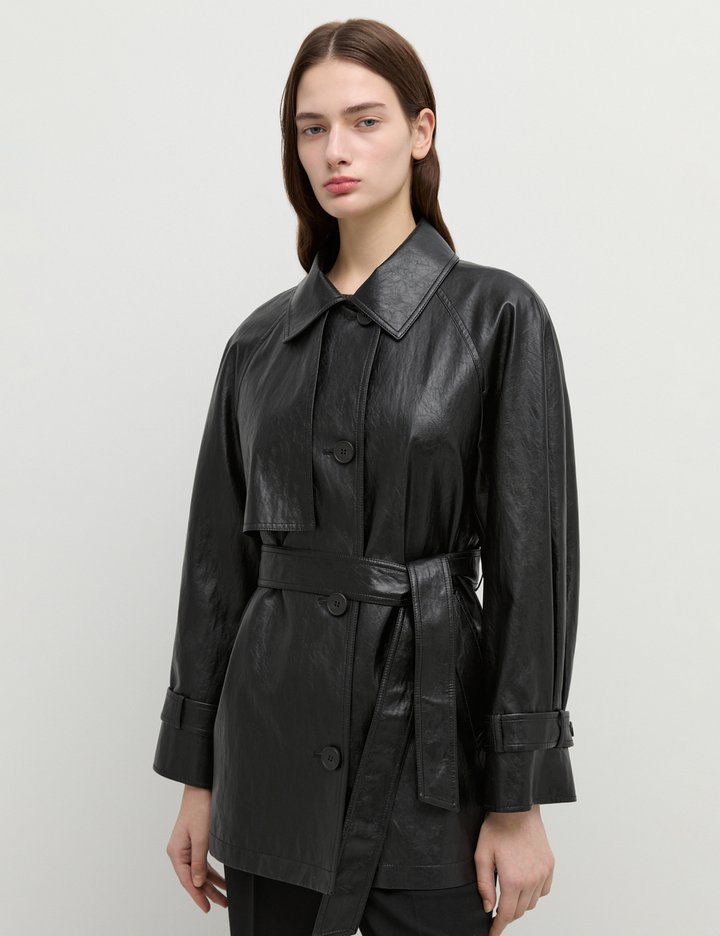 [쉬즈미스] 페이크 레더 벨티드 트렌치 코트_SWWBYP32010