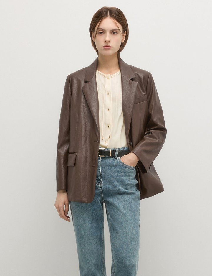 [쉬즈미스] 테일러드 투 버튼 페이크 레더 자켓_SWWJKP32030