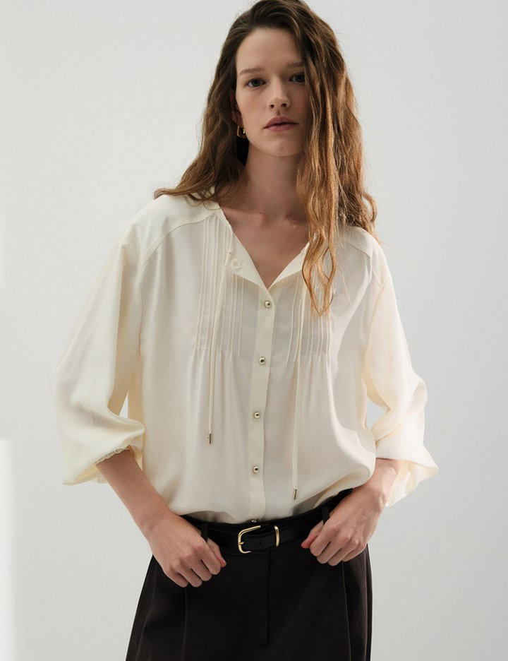[쉬즈미스] 라운드 핀턱 블라우스_SWWBLP32040
