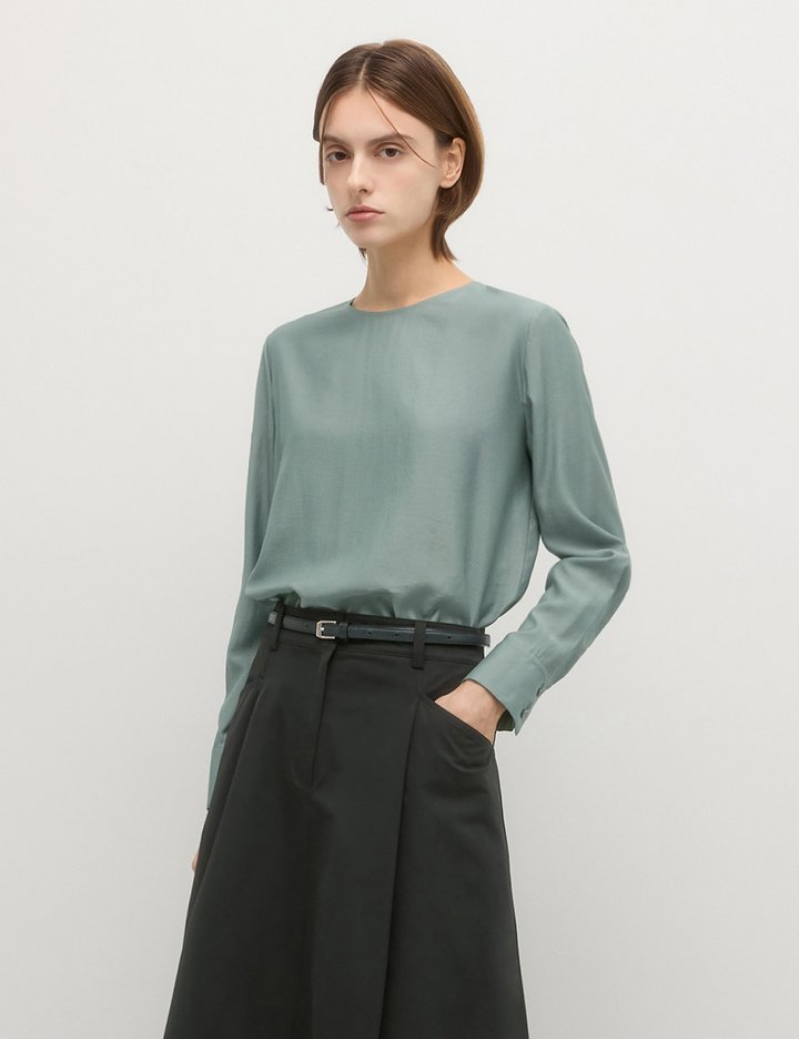 [쉬즈미스] 베이직 라운드넥 슬릿 블라우스_SWWBLP32030