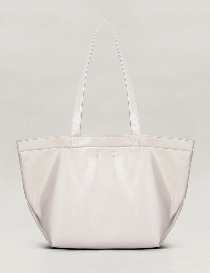 세미 글로시 텍스처, 스크래치에 비교적 강한 소재,중앙 내부 마그네틱 클로징,일체형 숄더 스트랩, 토트 스트랩 2way 디자인,쉐입을 잡아주는 사이드 디자인,노트북 수납 가능